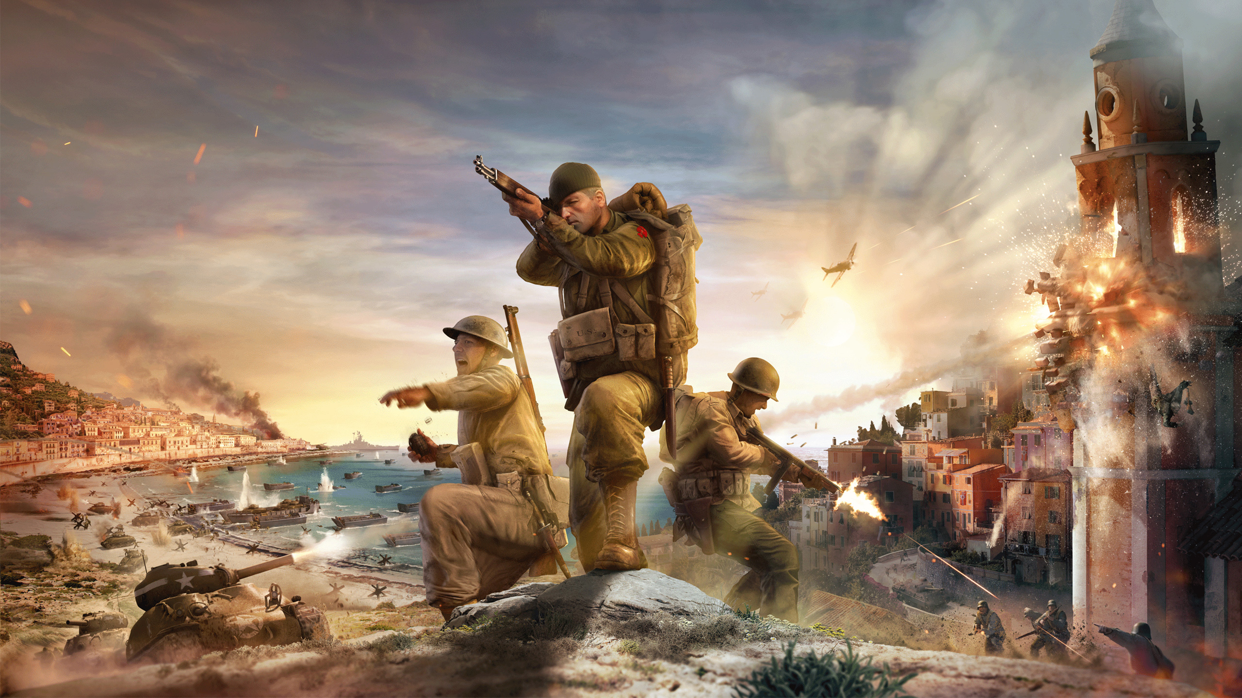 The main objective of this key art was to highlight the new battle groups introduced in the expansion, presenting a story with a gritty and cinematic atmosphere. The project involved devising a visual solution to serve as the foundation for the final key art, drawing inspiration from WWII photography and cinematic depictions of war. The primary challenges included meeting tight deadlines while authentically showcasing both factions in a single scene. The work also encompassed the creation of the logo and adaptations for various platforms. Final art was produced by Fluid Studios.