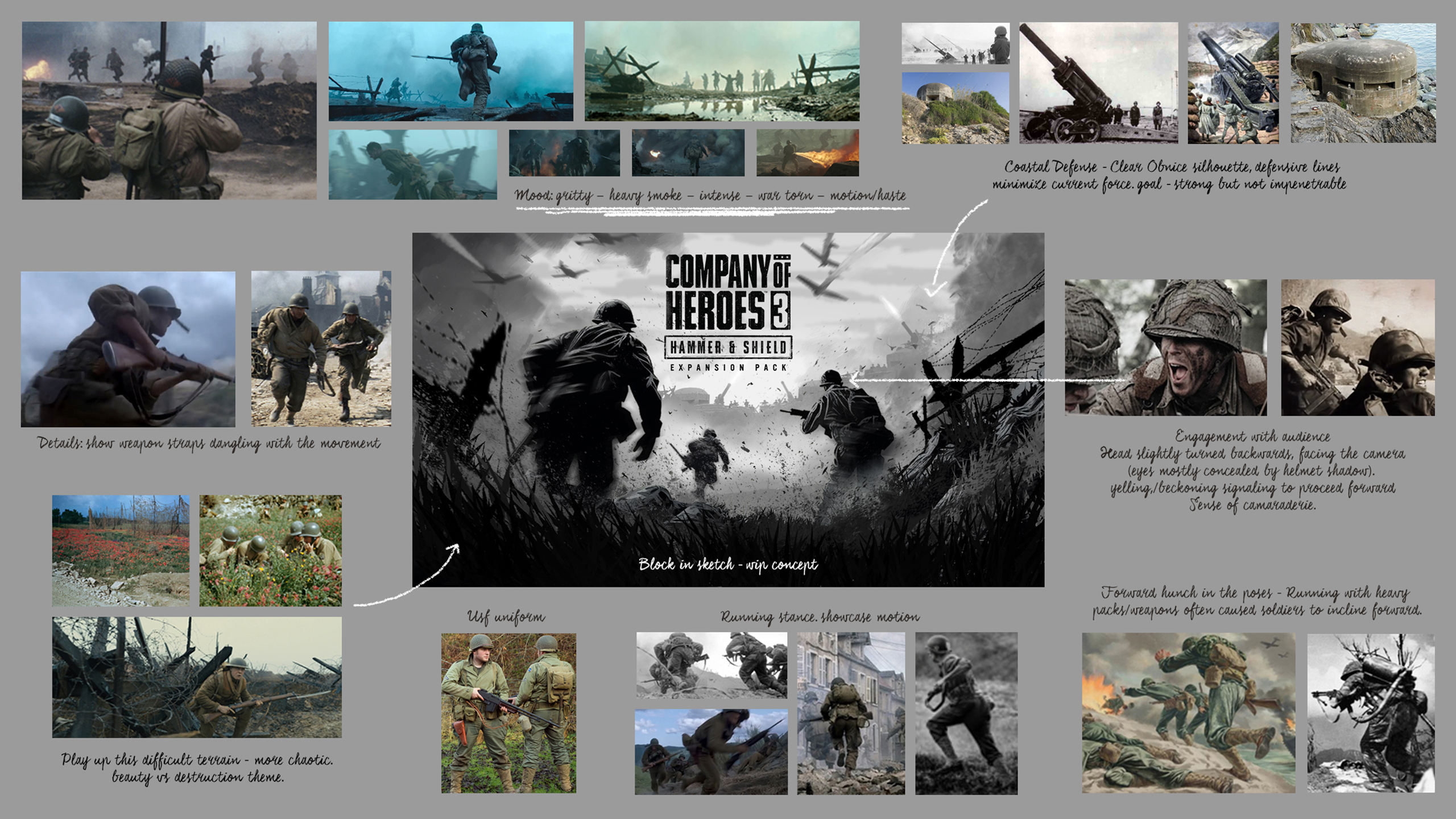 A series of marketing key art pieces was developed to support launch campaigns for Company of Heroes 3, blending striking visuals with historically grounded themes. The work was carried out in collaboration with the game’s art director, marketing team, and external agencies, ensuring every piece aligned with both creative vision and promotional goals.
