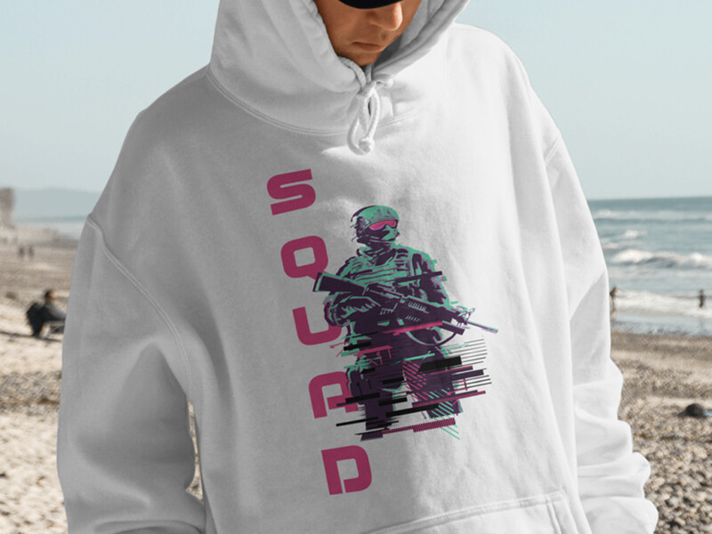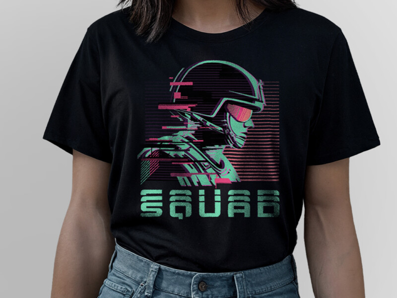 The result is a visually distinctive apparel piece that captures the spirit of Squad through a retro lens, uniting the game’s identity with vaporwave aesthetics in a wearable design.