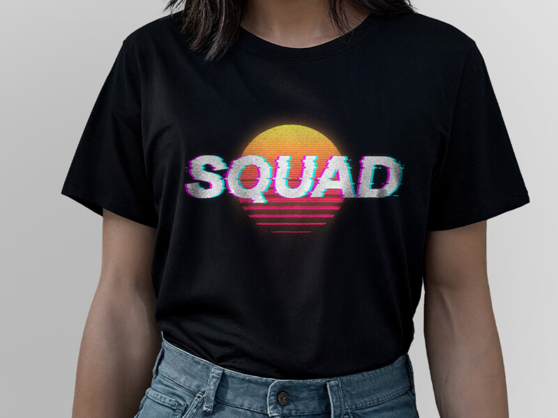 In collaboration with Offworld Industries, the brief was to create apparel for Squad fans that would feel at home both in an online merch store and at a synthwave concert. The direction drew inspiration from 80s and 90s vaporwave aesthetics—bold neons, glitched visuals, and nostalgic gradients.